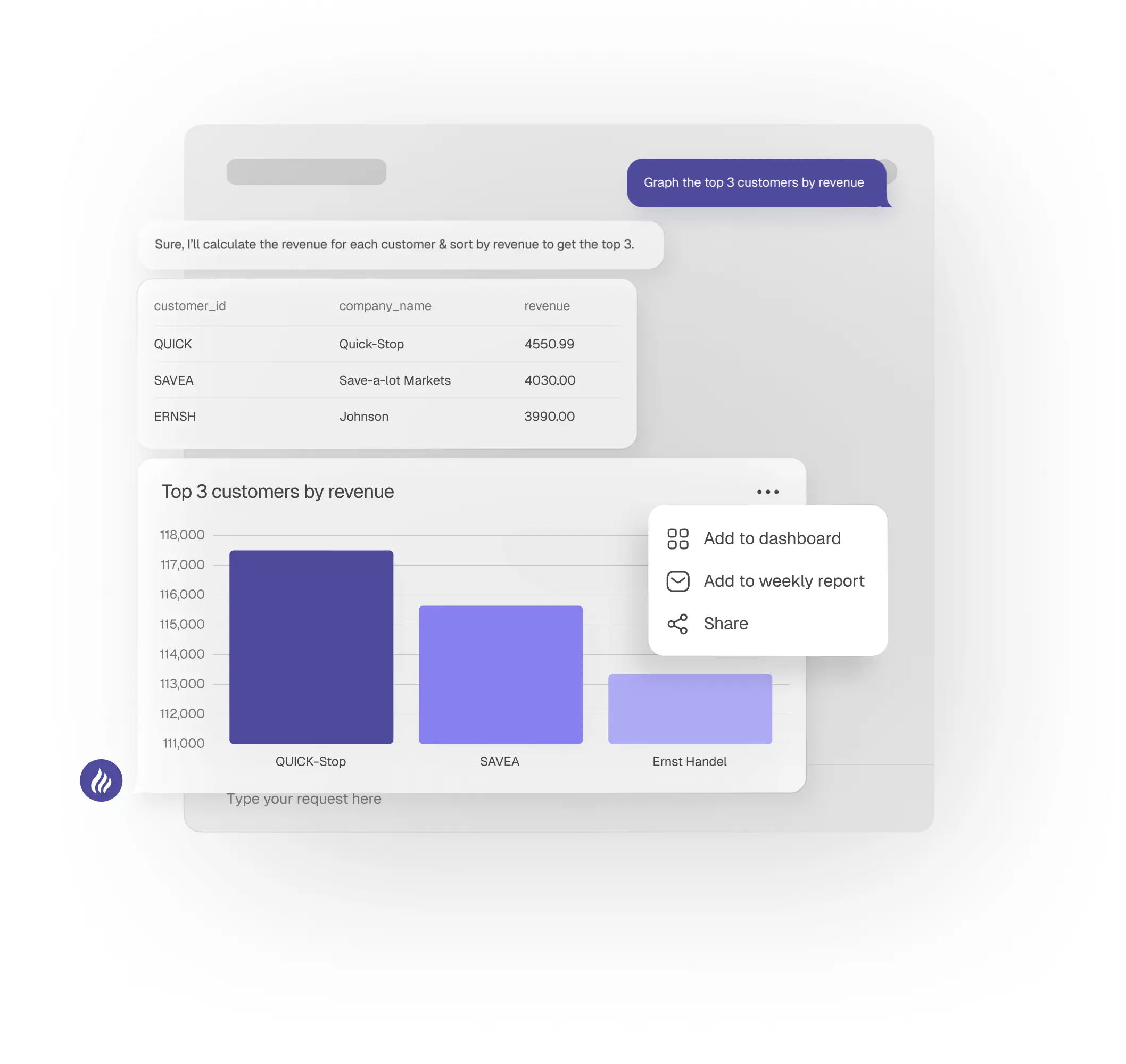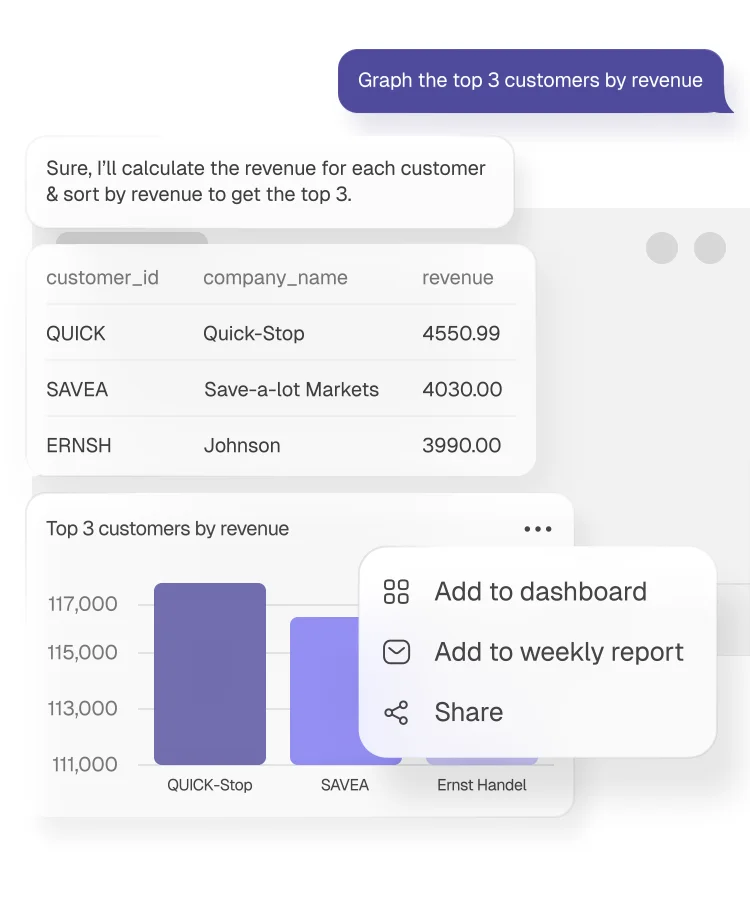 Unlock effortless access to trusted data insights by connecting an AI Data Analyst to your SQL database.